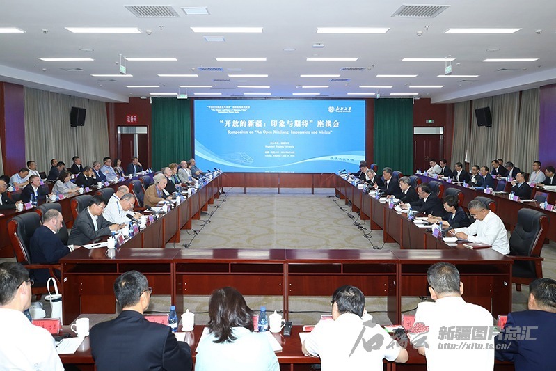王建新、伊力扎提·艾合買提江、哈丹·卡賓、孫紅梅、木合亞提·加爾木哈買提、凱賽爾·阿不都克熱木,國家民委有關同志,國內外專家學者代表,自治區(qū)有關單位和部門負責同志參加座談會。
