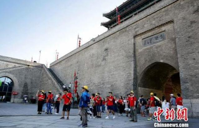 ↑資料圖:青年學(xué)生參觀西安城墻。 江星 攝