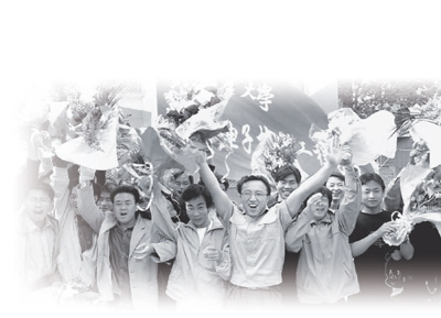 2003年5月8日,解除隔離控制的北方交通大學學生歡呼雀躍。劉 龍攝