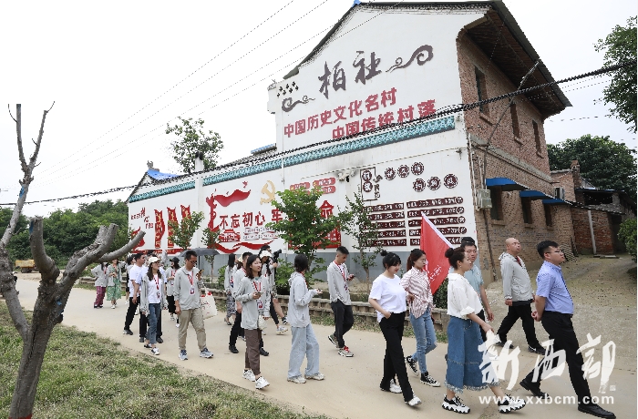 穿過一段林蔭路后,“‘陜’閃紅星耀中國”網(wǎng)絡(luò)主題活動(dòng)采訪團(tuán)來到柏社村,親身感受到了什么是“見樹不見村”,村道兩側(cè)高大繁茂的楸樹遮天蔽日,使得整個(gè)村落掩映在天然的綠色屏障中,形成十分封閉幽靜的空間環(huán)境。在微風(fēng)的蕩漾下,一切顯得那么的靜謐、古樸而美好。