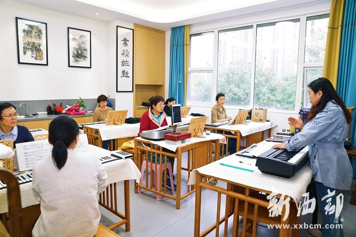 ▲神舟五路社區(qū)居民正在學(xué)習(xí)電子琴 張紅雨攝(新西部網(wǎng)發(fā))