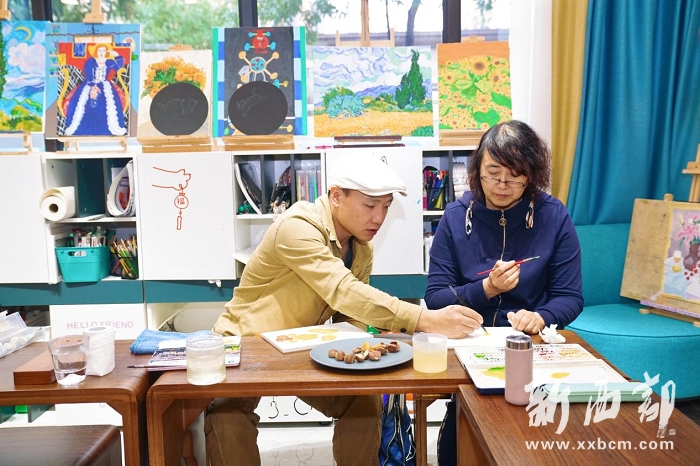 ▲社區(qū)居民正在和專業(yè)老師學(xué)習(xí)繪畫 張紅雨攝(新西部網(wǎng)發(fā))