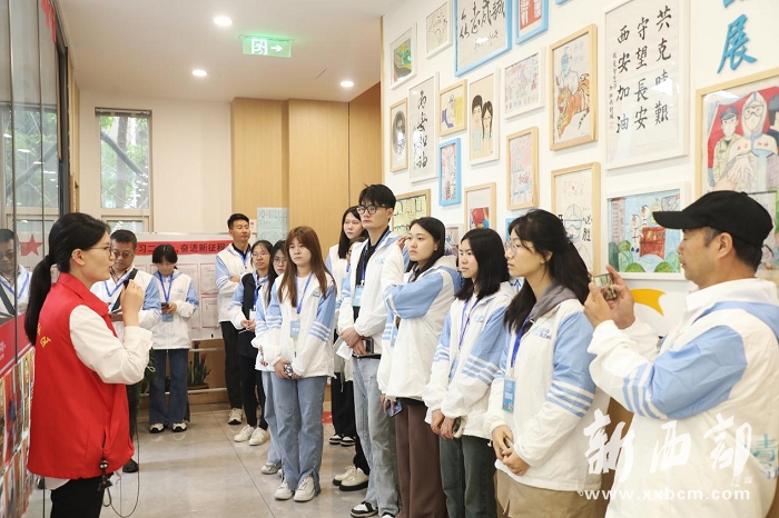 ▲王雯雯(左一)為媒體團(tuán)講解神舟五路社區(qū)的亮點(diǎn)工作 鐘發(fā)東攝(新西部網(wǎng)發(fā))