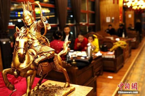 “以前,有些演藝廳很亂,但現(xiàn)在內(nèi)容很‘干凈’,還主打民族傳統(tǒng)文化,完全適合一家老少一起看?!睔W要才仁向記者介紹說,“這里一進(jìn)門,就是最傳統(tǒng)的格薩爾三十大將的面具,頂燈、沙發(fā)、桌子,都有格薩爾文化元素?!?/p>