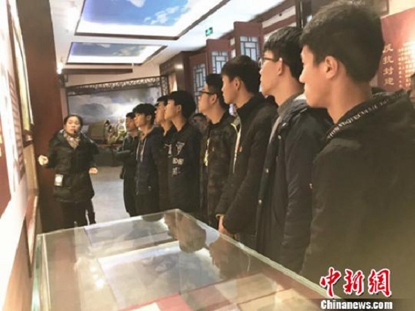 高校學(xué)子在紀(jì)念館耐心聽講解。 李麗龍 攝