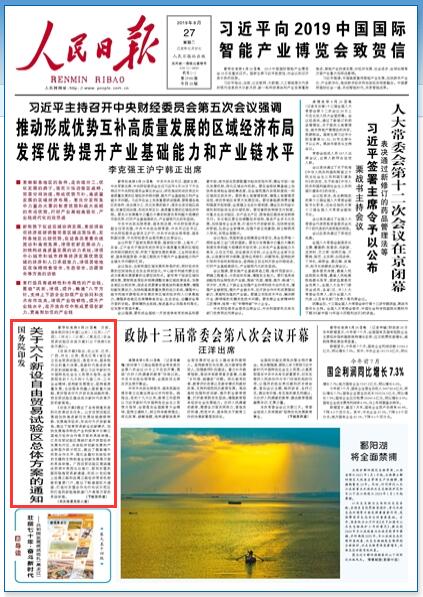 新華社北京8月26日電 日前,國務院印發(fā)《中國(山東)、(江蘇)、(廣西)、(河北)、(云南)、(黑龍江)自由貿易試驗區(qū)總體方案》(以下統(tǒng)稱《總體方案》)。