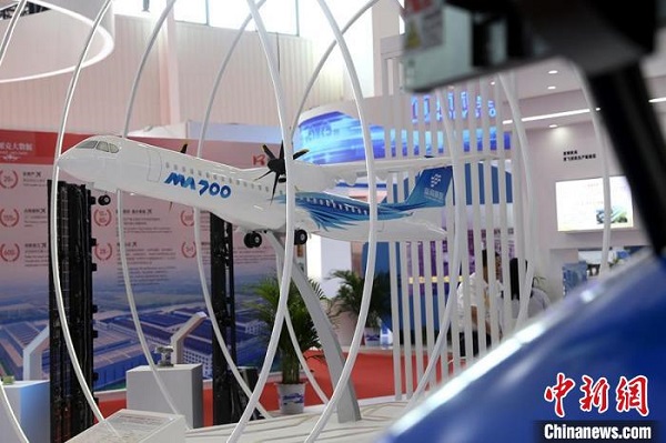 富閻產(chǎn)業(yè)合作園區(qū)的展品新舟700(MA700)客機模型。 王智超 攝