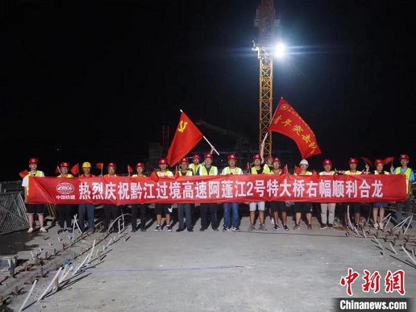 中新網(wǎng)重慶7月31日電(張旭)記者31日從中鐵建重慶投資集團(tuán)有限公司獲悉,當(dāng)天凌晨,黔江區(qū)過境高速公路阿蓬江2號特大橋右幅順利合龍。