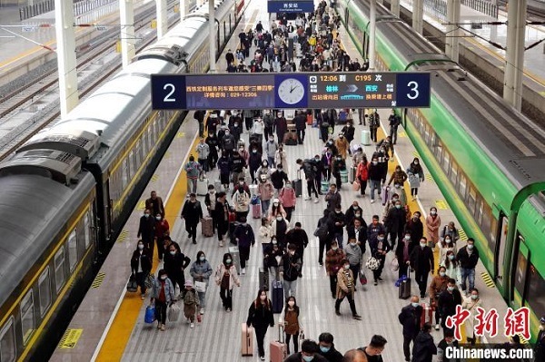 圖為旅客進(jìn)入西安火車站。張遠(yuǎn)攝