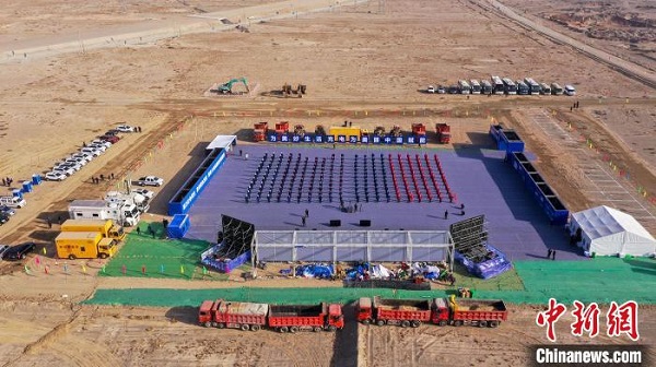 巴州—鐵干里克—若羌750千伏輸變電工程近日在新疆巴音郭楞蒙古自治州庫爾勒市開工。楊陽攝