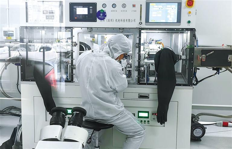 在銅川秦創(chuàng)原先進(jìn)激光與光電集成產(chǎn)業(yè)創(chuàng)新聚集區(qū),一家科技企業(yè)的工作人員在檢測產(chǎn)品(資料照片)。