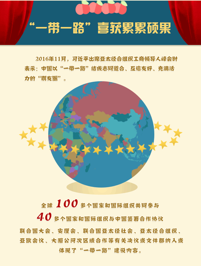 2013年,習(xí)近平主席提出“一帶一路”偉大構(gòu)想,引起世界各國(guó)廣泛共鳴。經(jīng)過(guò)近四年的扎實(shí)推進(jìn),目前,“一帶一路”倡議已落地生根、開(kāi)花結(jié)果,一幅惠及世界的藍(lán)圖正筆筆繪就、徐徐展開(kāi)。在此過(guò)程中,習(xí)近平主席在國(guó)內(nèi)外各種場(chǎng)合多次發(fā)表重要論述,他對(duì)“一帶一路”核心內(nèi)容如何闡述?“一帶一路”為全球經(jīng)濟(jì)發(fā)展注入怎樣的新動(dòng)力?各方又給出了怎樣的評(píng)價(jià)?一張動(dòng)態(tài)圖解告訴你。