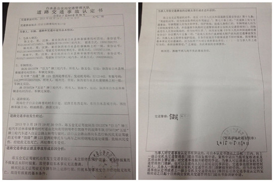 白水縣交警隊(duì)出具的第二份事故認(rèn)定書