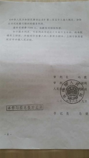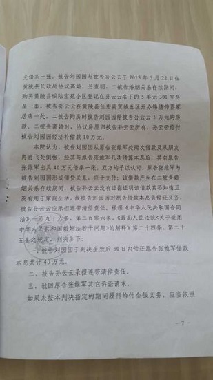 孫云云提供了一份黃陵縣人民法院的民事判決書(shū),從判決書(shū)上可以看出,黃陵縣隆坊信用社張維軍訴稱被告劉某某于2013年4月7日向其借款40萬(wàn)元,并“于2014年5月6日向法院提交了2014年3月27日張維軍49萬(wàn)元信用聯(lián)社收回貸款憑證,證明他按季支付利息?!?