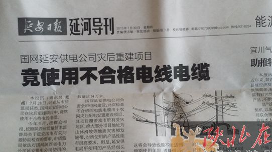 7月28日,記者從延安市質(zhì)監(jiān)局獲悉,國網(wǎng)延安供電公司災(zāi)后重建項目中,竟使用不合格電線電纜。