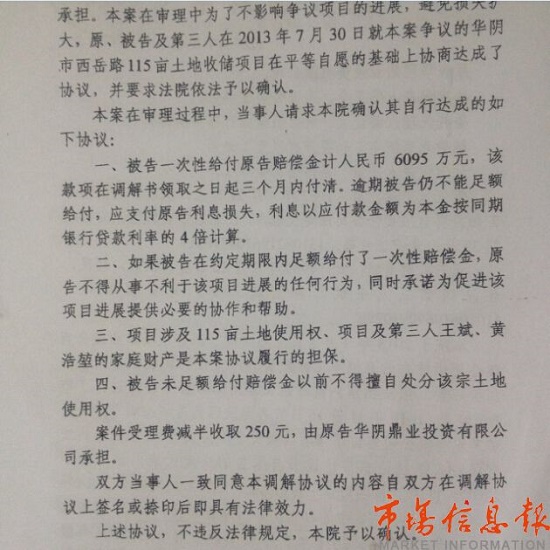 2010年春天童建軍院長來北京法官學校培訓時,兩人聯系上了。王斌說,老同學童院長告訴自己,稱他和時任市長盧發(fā)興關系很好【盧發(fā)興現任華陰市委書記】,你可以回家鄉(xiāng)投資。王斌來到華陰,政府對他很重視,盧市長親自拍板劃撥115畝土地。