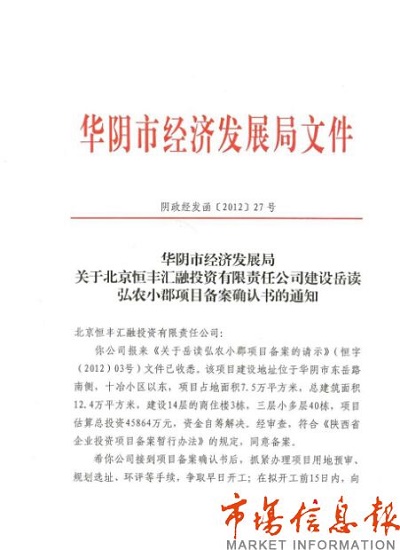 王斌告訴記者,當時算了一下帳感覺華陰房地產市場利潤可觀,老同學童院長見有利可圖,就迅速成立了一家名為“華陰鼎業(yè)投資有限公司”,因為當時華陰市政府要求房地產開發(fā)商必須在華陰本地注冊公司,以此避免稅收外漏?!霸?010年10月份童院長就借我的名義注資750萬,其中童院長投資的僅有160萬,其它的錢都是他的朋友和親戚投資的”。