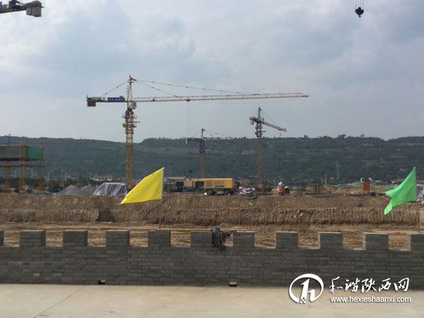 當日,夕陽西下;當?shù)?,無風悶熱。蔡家坡中學建筑工地建設場面熱火朝天……
