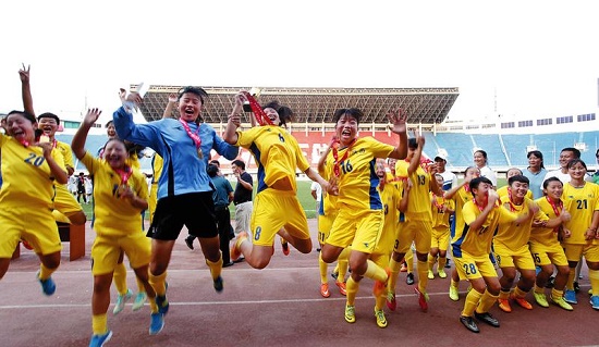 在激戰(zhàn)了100分鐘之后,2015年U16全國女足錦標(biāo)賽昨天在省體育場落下了帷幕。最終主場作戰(zhàn)的陜西青年隊?wèi){借著26號楊曉霞在加時賽中的一腳遠射,以1:0擊敗了天津隊,站在了最高領(lǐng)獎臺。姑娘們這一優(yōu)異的表現(xiàn),不僅贏得了省足管中心和教練組的褒獎,更贏得了廣大球迷的贊許——千余名球迷用歌聲和歡呼聲將省體育場營造成了歡樂的海洋。