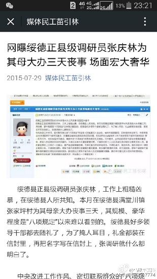 綏德縣正縣級(jí)調(diào)研員張慶林,工作上粗糙兇暴,在綏德縣人所共知。本月在綏德縣滿堂川鎮(zhèn)張家坪村為其母親大辦喪事三天,其規(guī)模、豪華程度是“八項(xiàng)規(guī)定”以來難以看到的。綏德縣好多領(lǐng)導(dǎo)干部都去隨禮了,為了掩人耳目,禮金都裝在信封里,再把名字寫在信封上,張調(diào)研就什么都明白了。