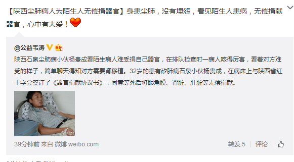 公益韋濤【陜西塵肺病人為陌生人無償捐器官】