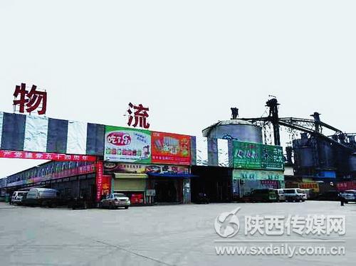 西安市石化大道“祥云物流市場(chǎng)”外景,旁邊一墻之隔就是一家正在生產(chǎn)的水泥廠。