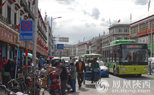 拉薩的盛夏依然微涼,報(bào)道團(tuán)成員不約而同的穿上了外套,大家急切盼望看一看真實(shí)的西藏、真實(shí)的拉薩街頭,看看和想象之中的西藏到底有何不同。今年是西藏自治區(qū)成立50年,西藏的面貌已經(jīng)發(fā)生了翻天覆地的變化,走在拉薩街頭,除了遍布各處的藏式建筑、身著各式藏族服飾的人們,以及作為旅游城市特征的人力三輪車(chē);更有現(xiàn)代化的高樓大廈、時(shí)尚多元的百姓生活、穿行不息的小汽車(chē)與城市公交。西藏,已不是我們?cè)?jīng)想象中的神秘莫測(cè)的西藏;拉薩,也早就脫胎換骨成為一個(gè)現(xiàn)代化大城市。