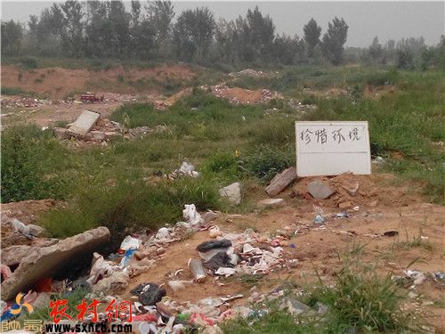 一望無(wú)際的垃圾帶,有好心村民不忍遭遇環(huán)境的侵害,自覺(jué)制作一塊“珍惜環(huán)境”的小牌子