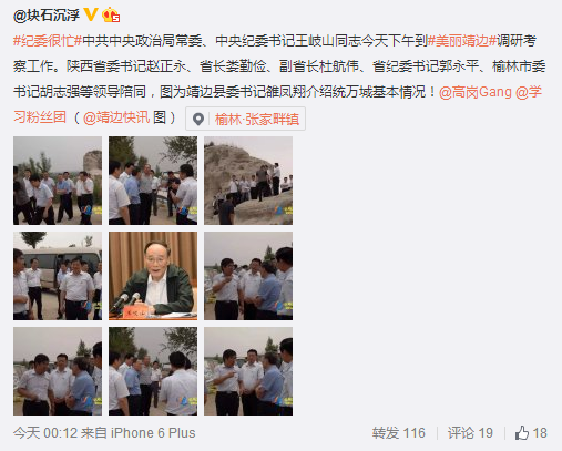 塊石沉浮【#紀(jì)委很忙# 王岐山到靖邊】