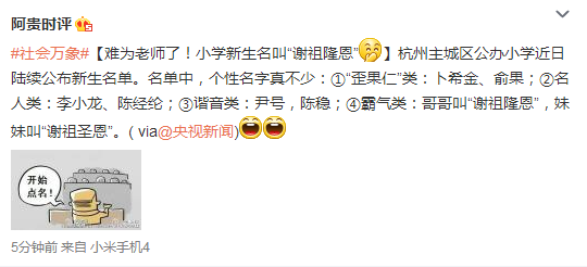 阿貴時(shí)評(píng)【難為老師了 奇葩的名字】