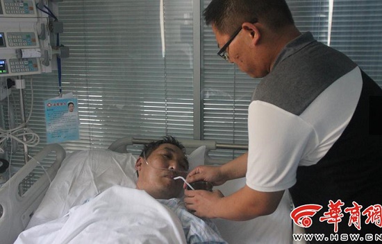 病房?jī)?nèi),苗漢中的兒子苗睿說,感謝停車后幫助父親的好人們。