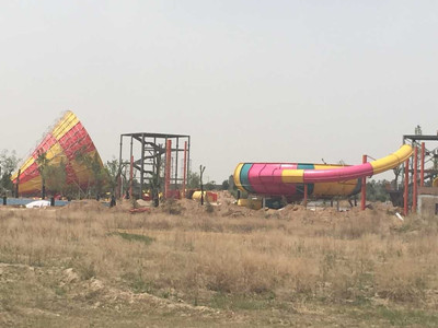 6月10日,在反映群眾的帶領(lǐng)下記者見到了群眾所稱的企業(yè)以租代征違規(guī)圈地搞建設(shè)現(xiàn)場(chǎng),直觀上看圈地面積大概有20多畝地,圍墻內(nèi)正在建設(shè)一大型水上樂園項(xiàng)目,施工現(xiàn)場(chǎng)也并未發(fā)現(xiàn)有明顯的安全警示牌及項(xiàng)目建設(shè)公示牌,而且工人在施工現(xiàn)場(chǎng)也并未做任何安全保護(hù)措施。
