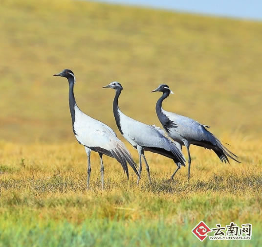 目前,蓑羽鶴在云南僅記錄于會(huì)澤和昭陽(yáng)兩個(gè)縣區(qū)。由于蓑羽鶴在四川和西藏均有記錄,該?dān)Q今后還會(huì)不斷地出現(xiàn)在云南,成為本地的冬候鳥。