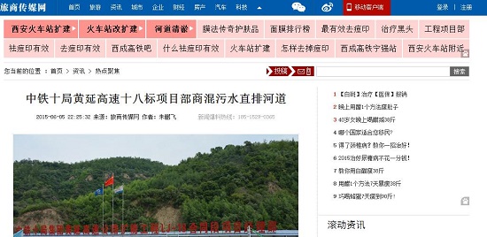 據(jù)記者了解到,中鐵十局黃延高速十八標(biāo)項(xiàng)目部去年開始施工,污水一直就直排主河道。然而,環(huán)保局卻稱一直不知情,卻對(duì)該項(xiàng)目部開具了10萬元的罰款了事。污染的河水如何處理?下游居民、畜、植物如何預(yù)防、如何治理等等問題怎么解決?對(duì)于此事本報(bào)繼續(xù)關(guān)注!