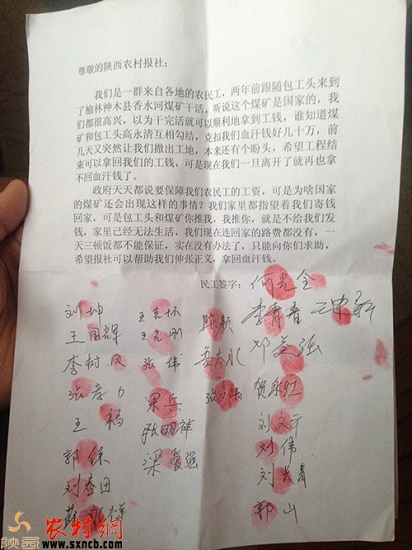 在神木縣香水河煤礦干活的農(nóng)民工,他們何時能夠把工資拿到手?本網(wǎng)將繼續(xù)關(guān)注。(記者 張海明 邵林喜)