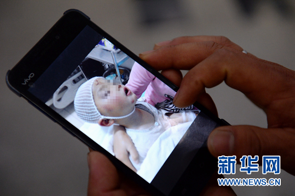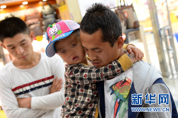 5月7日,受傷兒童的父親帶著孩子到西安檢查傷情。