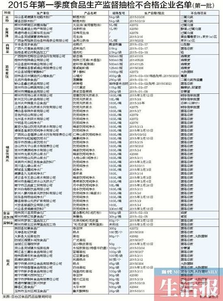 廣西公布今年一季度食品生產(chǎn)監(jiān)督抽檢不合格企業(yè)名單