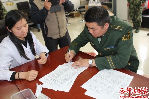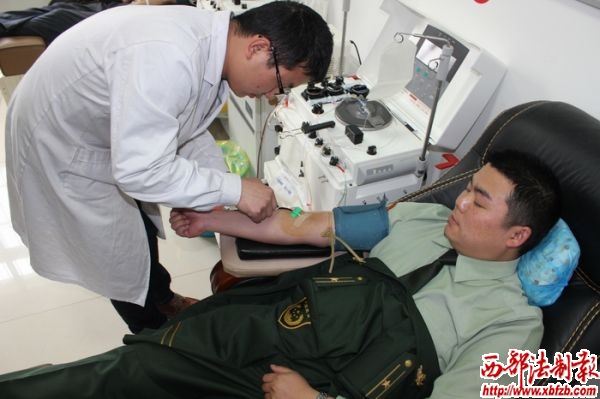 在漢中市中心廣場(chǎng)采血站,武警官兵自告奮勇、爭(zhēng)先捐獻(xiàn)。經(jīng)過采樣、檢驗(yàn)、比對(duì),醫(yī)生確定劉超的血小板樣符合治療條件。劉超隨即卷起衣袖,坐在了獻(xiàn)血椅上。兩個(gè)小時(shí)后,昏迷中的田建康老人和300余毫升血小板一起被送進(jìn)急救室。