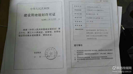 三原縣住建局批復(fù)的 “富聚車城”《建設(shè)用地規(guī)劃許可證》