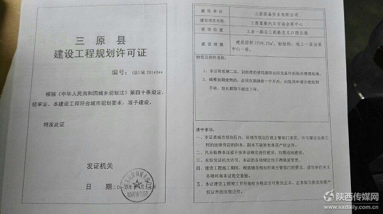 城市綜合執(zhí)法局城管監(jiān)察大隊(duì),王副隊(duì)長(zhǎng)向記者提供了三原住房和城鄉(xiāng)建設(shè)局對(duì)“富聚車城”臨時(shí)性建筑的批復(fù)件《建設(shè)用地規(guī)劃許可證》《建設(shè)工程規(guī)劃許可證》在附件一欄中清晰寫著:“未經(jīng)發(fā)證機(jī)關(guān)審核同意,本證的各項(xiàng)規(guī)定不得隨意變更"。并表示該項(xiàng)目雖有住建局所批復(fù)的手續(xù),但在沒(méi)有《建設(shè)工程施工許可證》各項(xiàng)規(guī)定的情況下,都屬于違法建筑,我們已經(jīng)對(duì)此項(xiàng)目發(fā)了重大案件行政處罰告知書,并責(zé)令停工補(bǔ)辦手續(xù)”。