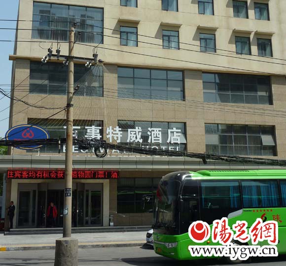 4月11日,記者來(lái)到西安植物園,按照林先生的指引,在植物園大門南側(cè),只見(jiàn)一棟11層的高樓赫然聳立,大樓門頭和側(cè)面都有“百事特威酒店”幾個(gè)大字。