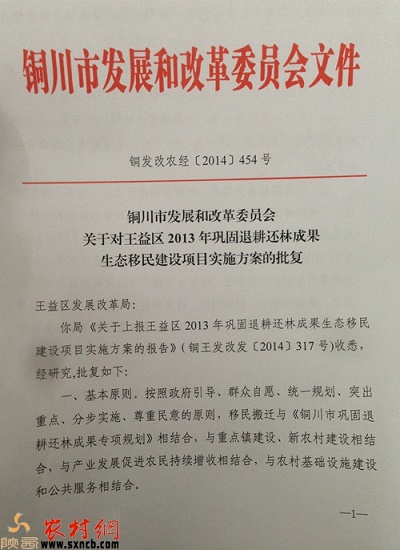 銅川市發(fā)改委對王益區(qū)2013年鞏固退耕還林成果生態(tài)移民建設(shè)項目實施方案的批復(fù)