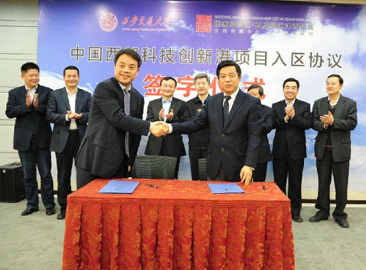 4月9日下午,“中國西部科技創(chuàng)新港——智慧學(xué)鎮(zhèn)”(以下簡稱“創(chuàng)新港”)項目入?yún)^(qū)協(xié)議簽約儀式在西安交通大學(xué)舉辦,標(biāo)志著該項目正式落戶西咸新區(qū)灃西新城。至2020年,創(chuàng)新港項目將建成科研、教育、轉(zhuǎn)孵化及綜合服務(wù)等四大功能板塊,未來可帶動上千億元產(chǎn)業(yè)價值。陜西省人大常委會副主任、西安交通大學(xué)黨委書記張邁曾出席簽約儀式并講話。西安交通大學(xué)校長王樹國和西咸新區(qū)黨工委書記、管委會常務(wù)副主任王軍分別致辭,交大副校長張漢榮主持儀式并與灃西新城劉宇斌同志代表雙方簽署協(xié)議。