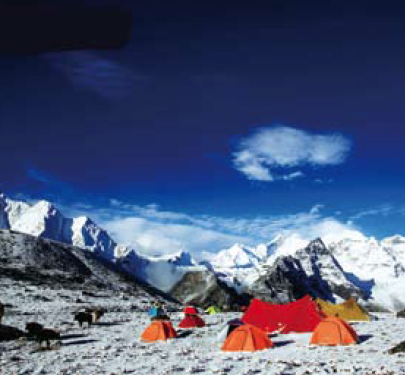 湯湘營地離海拔8463米的馬卡魯峰最近,馬卡魯峰有5條主要山脊,各條山脊都覆蓋著厚厚的冰雪,坡谷中分布著巨大的冰川,冰川充滿了多鋸齒形的陡崖和裂縫,所以馬卡魯峰的攀登難度極大。在人類16次攀登馬卡魯峰的活動(dòng)中,只有5次獲得了成功,而且至今也沒有人能夠在冬季成功登上馬卡魯峰。