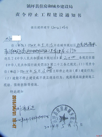 2015年4月1日,記者來到鎮(zhèn)坪縣住房和城鄉(xiāng)建設(shè)局,將該情況反映后,該局一負(fù)責(zé)人稱:“目前,縣城過境線的削山建房,都是私人行為,沒有取得城市建設(shè)的規(guī)劃手續(xù),是違法行為,已建成的兩棟高層,去年局里也下發(fā)過《責(zé)令停止工程建設(shè)通知書》,要求停止違法行為?!庇浾邌枺骸盀槭裁吹侥壳盀橹箻欠恳呀ǔ筛邔?,并未停工,且城區(qū)還有多處正在削山建房,既已確定此行為是違法行為,局里卻沒有采取任何措施制止?”該負(fù)責(zé)人解釋說:“局里只有下發(fā)《責(zé)令停止工程建設(shè)通知書》的權(quán)利,至于如何制止,法院不受理,我們也是沒有其他強(qiáng)制措施?!?