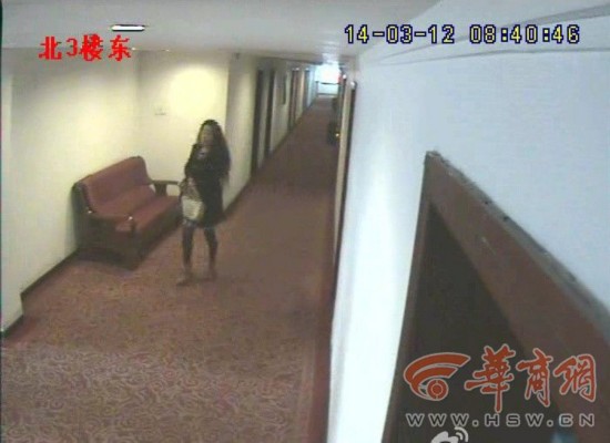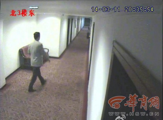 該網(wǎng)帖稱,“視頻截圖顯示,2014年3月11日20:35,楊某進(jìn)入渭化賓館315房間,該局中層女干部張某于21:26進(jìn)入該房間。第二天早晨8:02,先是楊某走出該房間,6分鐘后張某走出了同一房間。另一段視頻截圖顯示,2014年3月17日晚20:05,張某進(jìn)入該房間,隨后的21:28楊某進(jìn)入該房,一直到次日早晨8:20,二人才一前一后走出房間?!?/p>