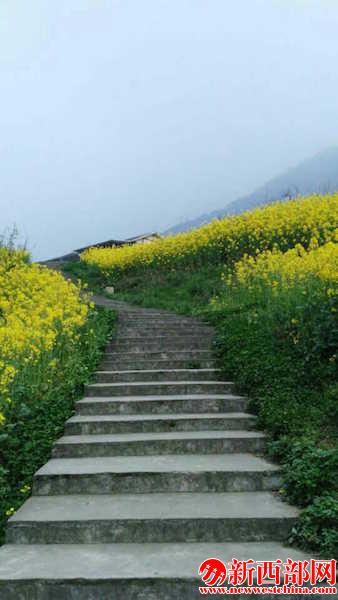 油菜花一路上看到不少,只有這一處讓人怦然心動——這是通往漁子溪512公墓的臺階。