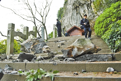 廣西桂林市疊彩山景區(qū)落石事故現(xiàn)場。新華社發(fā)