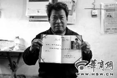 3月4日上午,在李大朋家,李大朋拿出“榮譽(yù)證書”,里面還夾著一張兒子的照片,“這些都會好好地保存起來”。