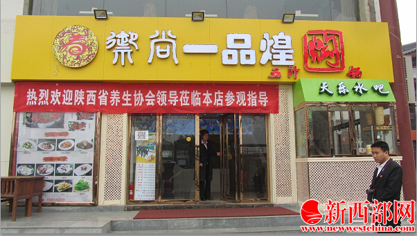 2014年2月2日,陜西省養(yǎng)生協(xié)會會長卜廣民(左三)應(yīng)邀來到御尚一品煌大雁塔店,與店方管理者合照。卜廣民會長說:“所謂大健康,就是圍繞人的衣食住行、生老病死,對生命實施全程、全面、全要素呵護(hù),既追求個性生理、身體健康,也追求心理、精神以及社會、環(huán)境、家庭、人群等各方面健康?!?(新西部網(wǎng) 王順利攝)